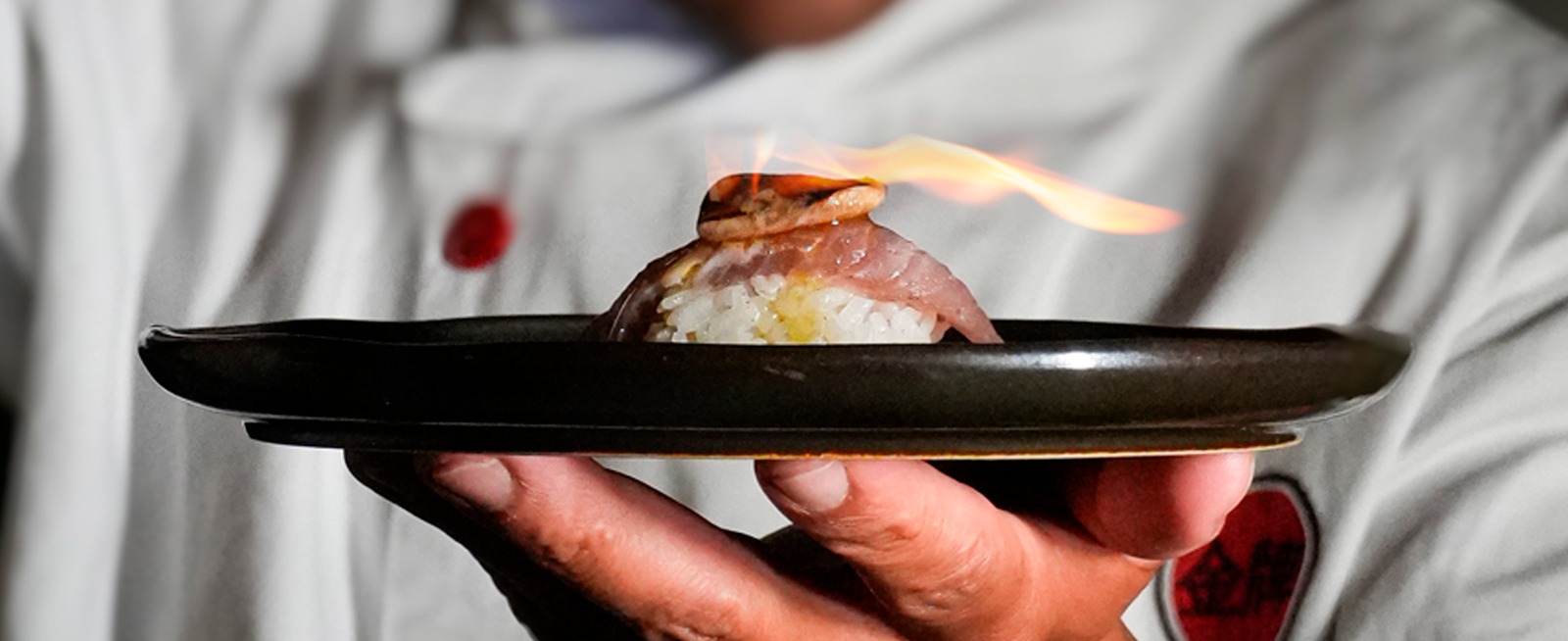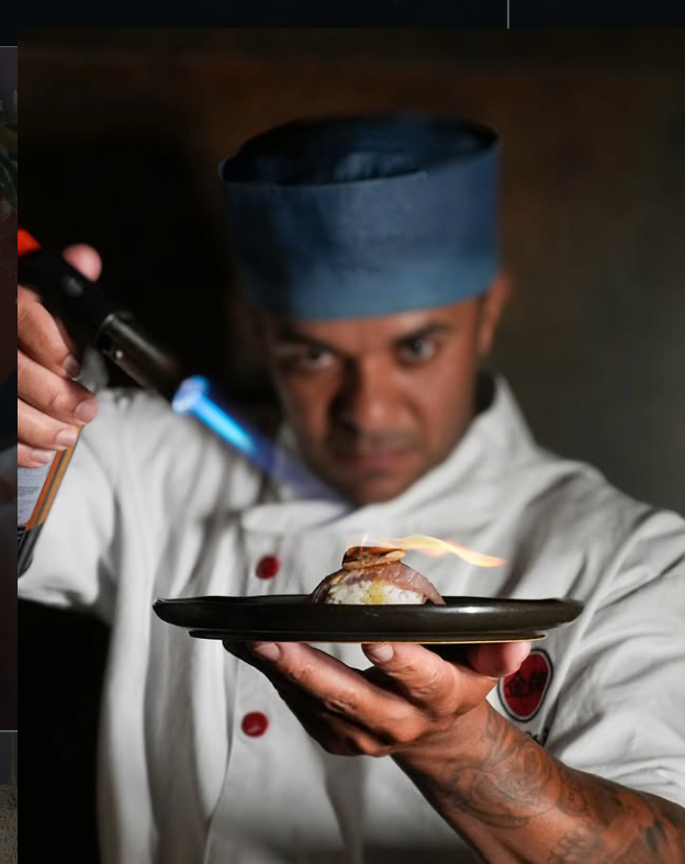 Nosso chef traz técnicas refinadas e um profundo conhecimento da culinária japonesa. Com seleção rigorosa de ingredientes importados, cada prato é preparado com dedicação absoluta.